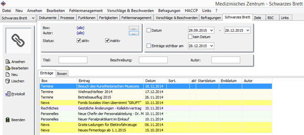 Das Schwarze Brett ist ein - optionaler - Begrüßungsschirm des CorpMan®-Systems.